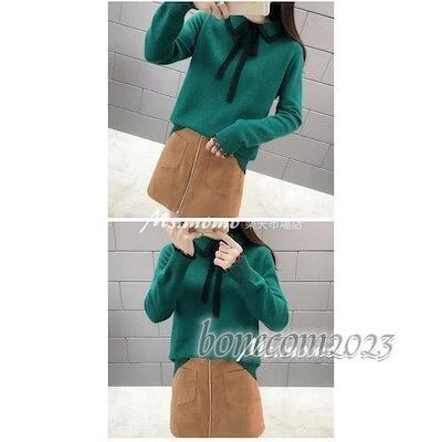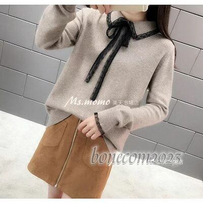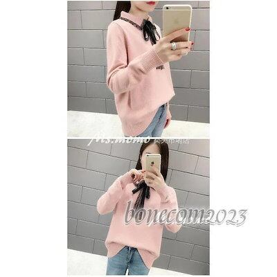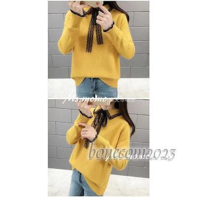 ニットトップス 折り襟 無地セーター 韓国風 ショット丈ニットインナー オシャレ大人 ゆったりプルオーバー 秋冬代長袖セーター レディース