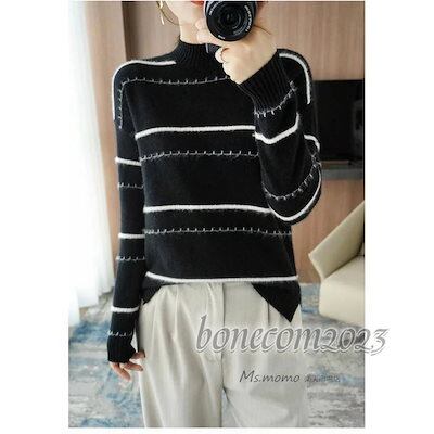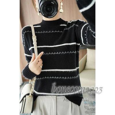 ニットトップス 秋冬代長袖 ショット丈プルオーバー ボーダー柄セーター 大人韓国風 ニットトップス 代 レディース ゆったりニット オシャレ