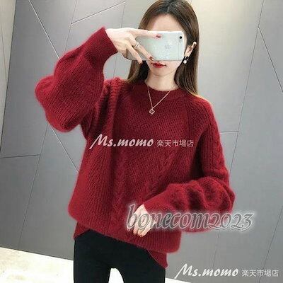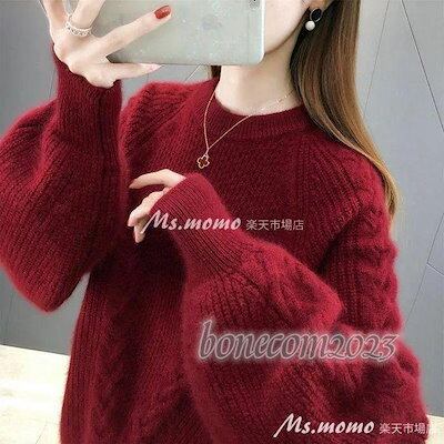 オシャレ大人 クルーネック 無地セーター ゆったりニットインナー 韓国風 秋冬代長袖ニットトップス レディース ニットソー ニットセーター