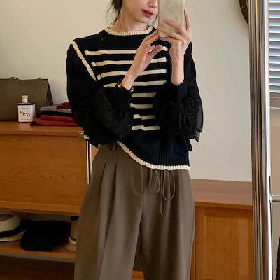 冬 レディース セーター 春 ドッキングニット 秋 異素材