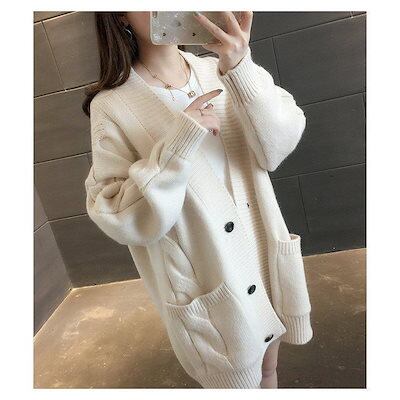 ゆったり ニットカーディガン オシャレ ネックカーディガン 風 アウター レディース 長袖ニットトップス プルオーバー 秋冬 コーディガン 無地セーター
