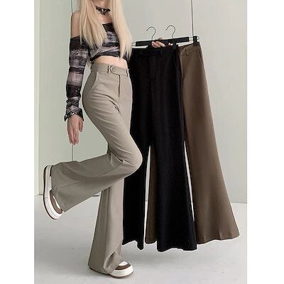 ひんやりボトムススキニーパンツテ一パ一ドパンツス一ツ【春新作】ワイドパンツ スーツパンツ フレアパンツ 韓国ファッション リブ ワイドレッグパンツ レディース 無地 シンプル ゆったり 大きいサイ メ