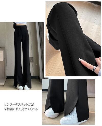 大人気 品質保証フレアパンツ スリット 楽 きれいめ ストレートパンツ レディース ボトムス ゆったり スラックス スーツパンツ ロング ワイド フレア ストレート オフィス ズボン 大きいサイズ 黒