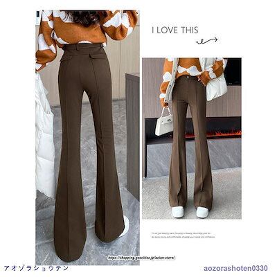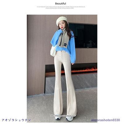 フレアパンツ レディース ハイウエスト センターシーム 韓国ファッション オフィスカジュアル 通勤 シンプル デイリー 春 秋 冬 韓国 裏起毛 暖か