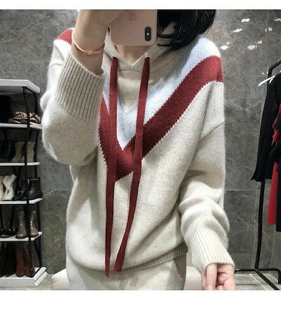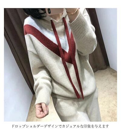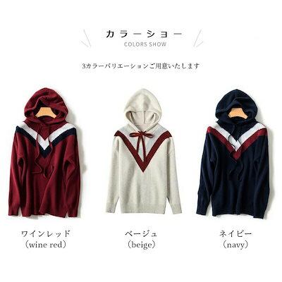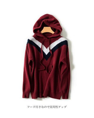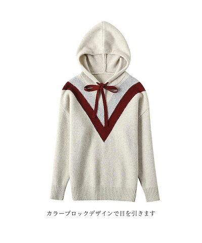 【ニットパーカー レディース】パーカー フード付き プルパーカー 秋パーカー 秋物 カラーブロック 長袖 ニットトップス プルオーバー 大きいサイズ 春秋 トップス 柔らかい ゆったり 体型カバー 定