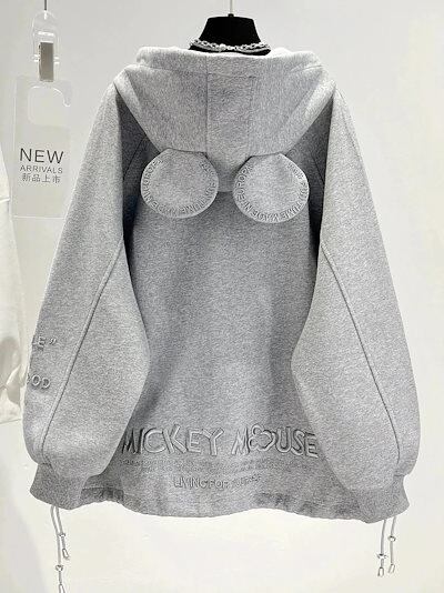 大好評(新品満減)フリース スウェット カーディガン 新作 刺繍 ミッキーの耳 フード付き ゆったり 万能 厚手 コート レディース長袖ミッキー