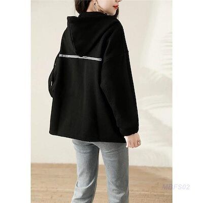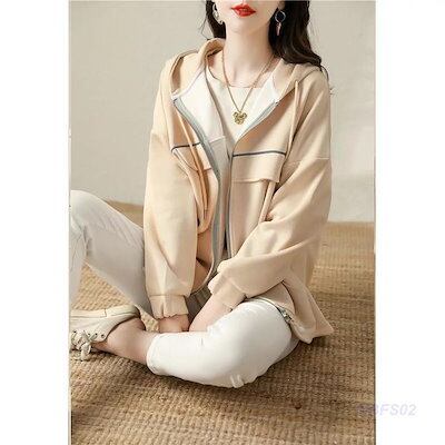 パーカー ジップアップパーカー レディース 長袖 前開き フード付き トップス アウター 無地 カジュアル ゆったり シンプル エレガント 上品 春秋