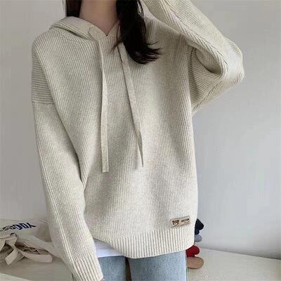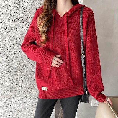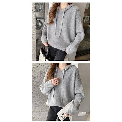 ニットトップス レディース セーターパーカー タイドシャツ ゆったり フード付き プルオーバー 長袖 無地 オシャレ デイリー 20代30代 40代