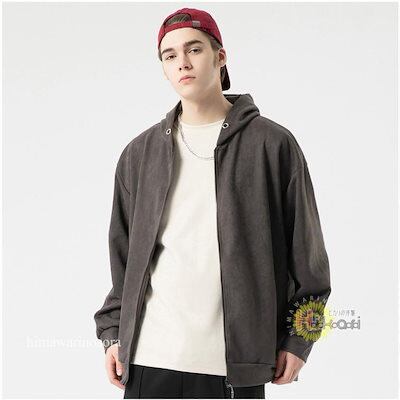 パーカー メンズ レディース スエード 無地 ジップアップ パーカー 上 トップス 長袖 シンプル スウェットパーカー ジップ