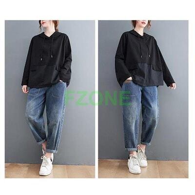 パーカー Tシャツ レディース ブラウス 春秋 フード付き 長袖 シャツブラウス トップス 着心地 切り替え 大人 ゆったり 体型カバー 着痩せ カジュアル 着回し