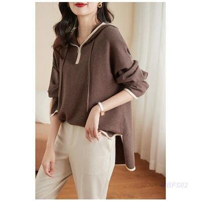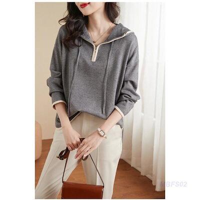 ニット レディース パーカー カットソー トップス フード付き ファスナー 長袖 無地 セーター カジュアル ゆったり おしゃれ パーティー 二次会