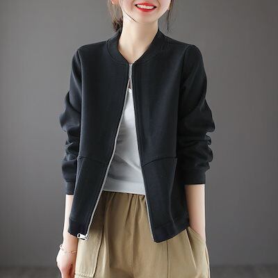 春 夏 人気なジャケット ブルゾン長袖ライトレディースジャケット無地スウェットショート丈大きいサイズ アウター 韓国ファッション