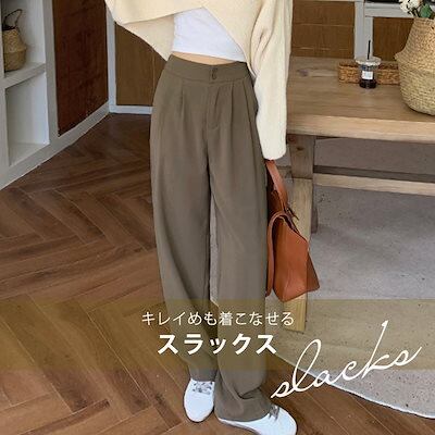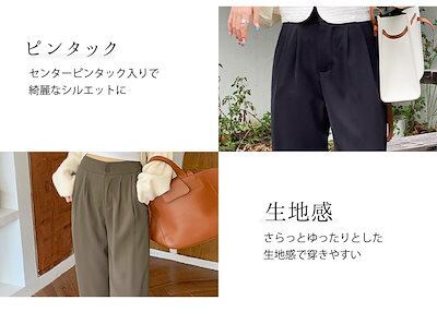 スラックス レディース ロングパンツ ボトムス 春秋 10分丈 きれいめ 薄手 黒 ストレート ピンタック ポケット フロントボタン ウエストゴム バックゴム シンプル 無地 オフィスカジュアル フォ