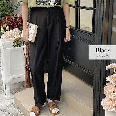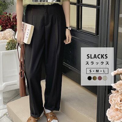 スラックス レディース ストレートパンツ 春夏 秋 ボトムス ゆったり 無地 シンプル 黒 白 きれいめ カジュアル オフィス 薄手 ワンタック センタープレス 美脚効果 ホック バックゴム サイド