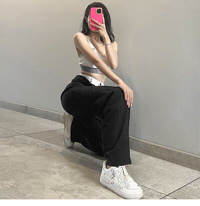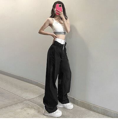 早い者勝ち クール?爽 ギャル ハイウエスト ストリート ロングパンツ スラックス ユニークなデザイン 重ね着デザイン感 ストレートパンツ スリム