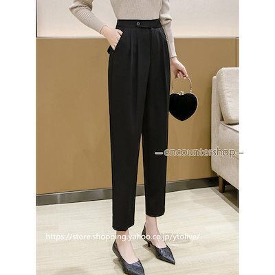 テーパードパンツ レディース ハイウエスト プリーツ アンクル丈 九分丈 無地 シンプル 通勤 コーデ 秋 ファッション