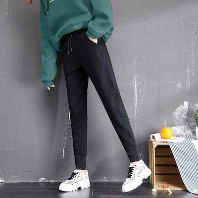 高級な質感ジョガーパンツ裏起毛レディーステーパードパンツロング丈ボトムススポーツオフィス無地ウエストゴム秋冬ロング304050
