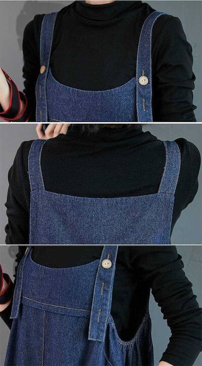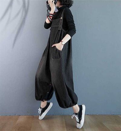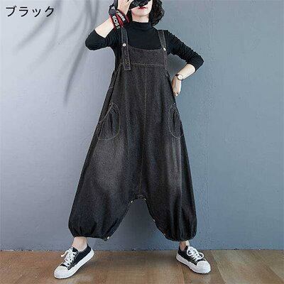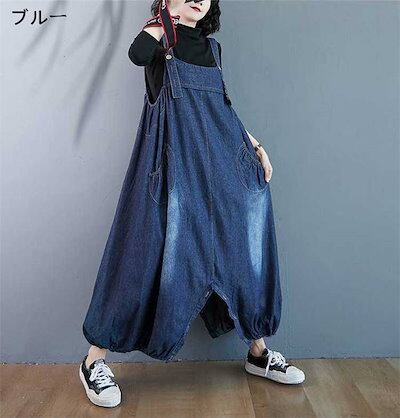 サロペット パンツ デニム サロペットパンツ オールインワン レディース パンツドレス デニムパンツ オーバーオール ワイドパンツ ガウチョパンツ ゆったり 体型カバー 着痩せ 無地 ロング丈 マキシ