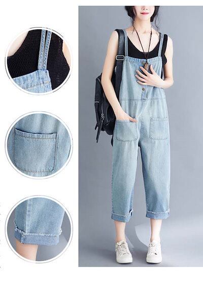 サロペット レディース デニムサロペット オールインワン 九分丈 サロペット デニム サルエルパンツ オーバーオール ワイド ロング ゆったり カジュアル オールシーズン パンツ サロペット 可愛い