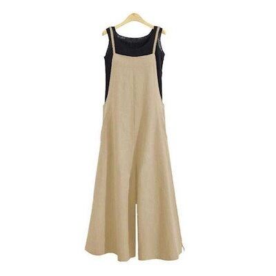 サロペットパンツ レディース オールインワン ワイドパンツ ロングパンツ オーバーオール コットン 薄手 スリット入り マキシ Aライン ロング 無地 春夏 レディースゆったり