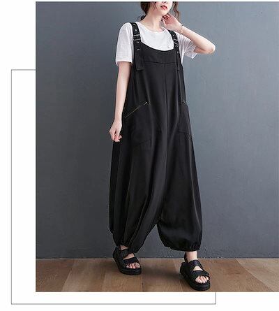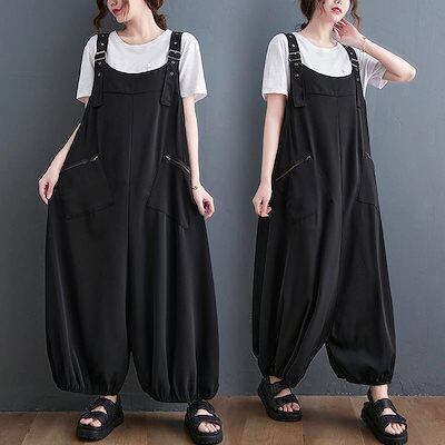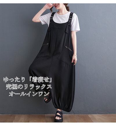 サロペット オールインワン レディース ワイドパンツ サロペットパンツ ロングパンツ オーバーオール ボトムス パンツ ズボン 秋 黒パンツ ロング丈 サロペット 大人 リラックス 体型カバー 着痩せ