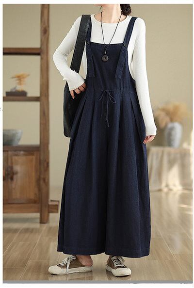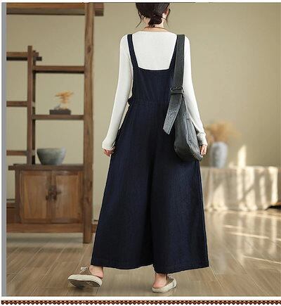 サロペット デニム ワイドパンツ レディース オールインワン キュロット ワイド 体型カバー デニムパンツ ロングパンツ ボトムス ジーンズ 無地 大きいサイズ ゆったり オーバーオール 大きいサイズ