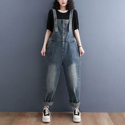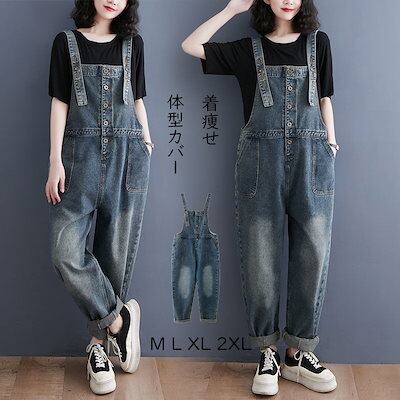 サロペット パンツ レディース ボトムス デニムパンツ デニムサロペット オールインワン 春 サロペットパンツ 秋 ロングパンツ デニム オーバーオール ポケット付き ワイドパンツ ズボン ロング丈