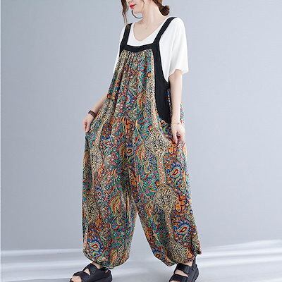 サロペット パンツ オールインワン バルーンパンツ 夏 花柄 コクーンパンツ サルエルパンツ レディース ロングパンツ パンツ 春夏 ボトムス サロペットパンツ ズボン ロング丈 オーバーオール 大き