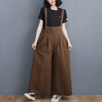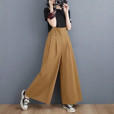サロペット パンツ レディース ワイドパンツ 春 夏 オールインワン オーバーオール パンツ ボトムス ガウチョパンツ ロング スカーチョ ロングパンツ ワイド ガウチョ ハイウエスト バックリボン