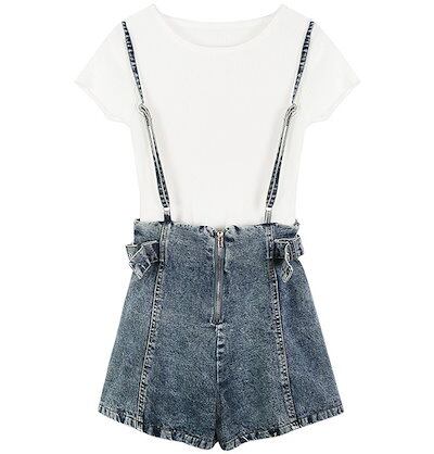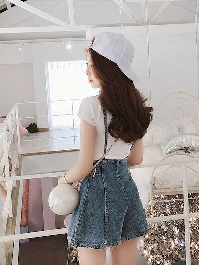 レディース 2点セット サスペンダー パンツ Tシャツ サロペット オールインワン オーバーオール ショートパンツ 短パン 半袖 カジュアル 可愛い フェミニン おしゃれ お出かけ デイリー 普段着