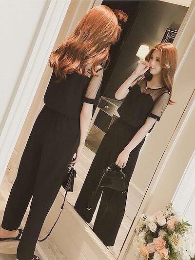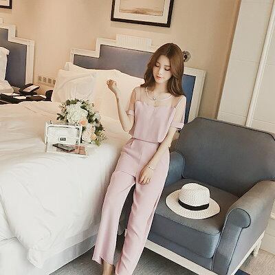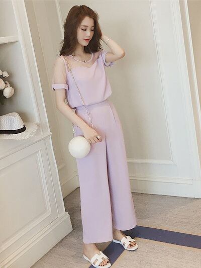レディース サロペット 透け感 透け素材 オールインワン オーバーオール ワイドレッグパンツ ボトムス カジュアル 可愛い フェミニン おしゃれ お出かけ デイリー 普段着 春 夏 パープル ブ