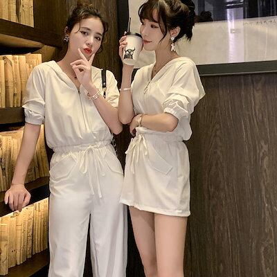 レディース ジャンプスーツ オールインワン 半袖 オーバーオール ショートパンツ 短パン ボトムス エレガント きれいめ カジュアル 可愛い フェミニン おしゃれ お出かけ ピンク ホワイト X