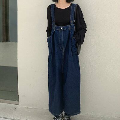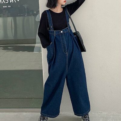 レディース デニム サロペット オールインワン オーバーオール ジーンズ メンズライク ボーイズライク カジュアル 可愛い 学生 オーバーサイズ ゆったり おしゃれ お出かけ デイリー ネイビ