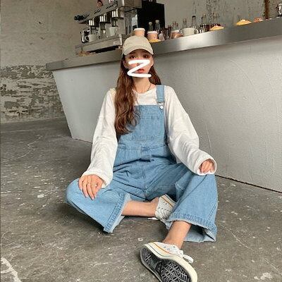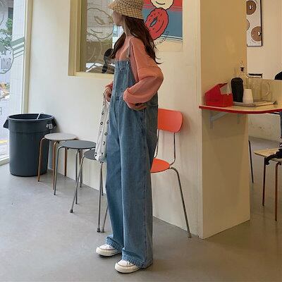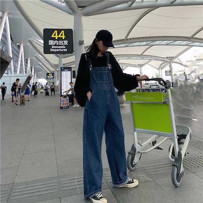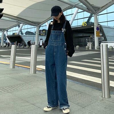 レディース デニム オーバーオール サロペット ボトムス 無地 春秋 レトロ カジュアル ストリート アウトドア 大人可愛い ラフスタイル 休日コーデ お出かけ デート デイリー 普段着 ネイビー