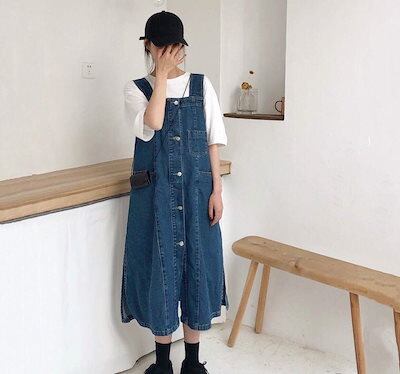 レディース デニム セット ジャンパースカート 半袖Tシャツ オールインワン オーバーオール ボトムス エレガント きれいめ カジュアル 可愛い フェミニン おしゃれ お出かけ デイリー ブル