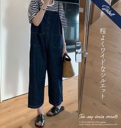 オーバーオール デニム サロペット レディース ワイド 40代 夏 オールインワン パンツ カジュアル ゆったり デニムサロペット 前後2way おしゃれ M L 2L