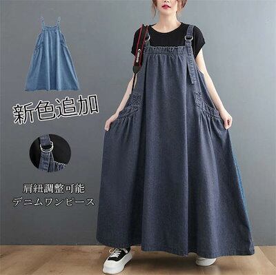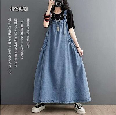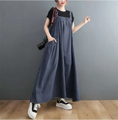 オールインワン レディース サロペット ワンピース デニム マキシワンピース ロングワンピ ジャンパースカート オーバーオール 大きいサイズ ゆったり 体型カバー ジャンスカ サロペットワンピース ロ