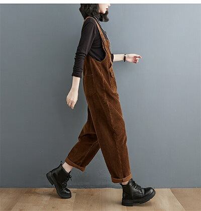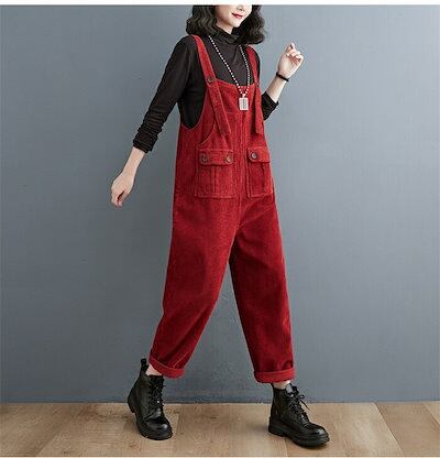 コーデュロイサロペット サロペット パンツ レディース コーデュロイ 秋冬 無地 ノースリーブ オールインワン 大きいサイズ オーバーオール ゆったり 着?せ ナチュラル 大人可愛 体型カバー 秋 春