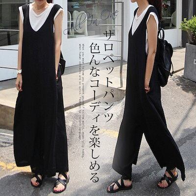 サロペット オールインワン レディース サロペットパンツ オールインワン パンツドレス オーバーオール ワイドパンツ ガウチョパンツ ゆったり 着痩せ OL