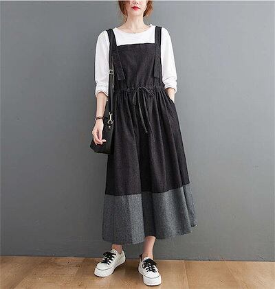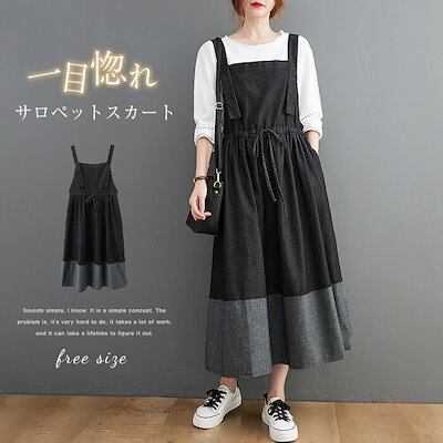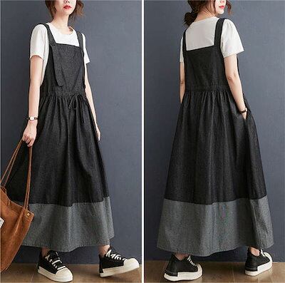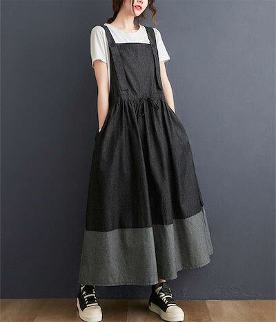 サロペット スカート レディース 春秋 サロペットスカート マキシ丈 デニム ワンピース ジャンスカ ジャンバースカート 切り替え 調節可能 オーバーオール ワンピ ウエストゴム スカート チュニック