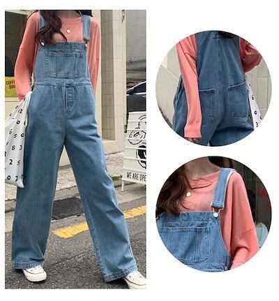 サロペット レディース デニム パンツ オーバーオール サロペットパンツ オールインワン ワイドパンツ 大きいサイズ 体型カバー ゆったり大きめ 楽ちん ゆる リラックス かわいい マタニティ 定番