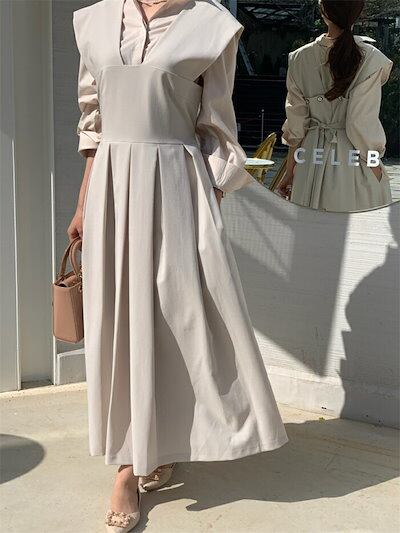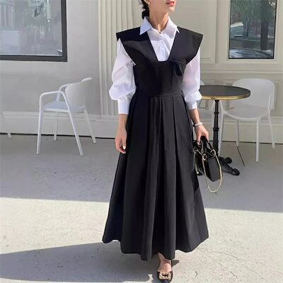 ワンピース ジャンパースカート 秋 レディース 個性的 大人 ジャンスカ サロペット 春秋 ワンピース プリーツスカート ロング オールインワン 重ね着 オーバーオール ノースリーブ 体型カバー 細見
