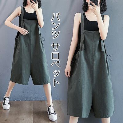 サロペットパンツ レディース ゆったり ショートパンツ オールインワン おしゃれ カジュアル 短パン カジュアル オーバーオール 可愛い 無地 夏 七分丈