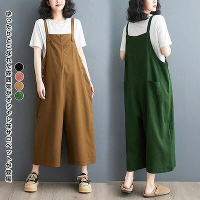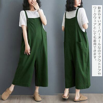 リネン サロペット レディース オールインワン キャミサロペット オーバーオール 綿麻 動きやすい ロングパンツ ワイドパンツ 長ズボン ガウチョパンツ ゆったり カジュアル ファッション 通勤 可愛