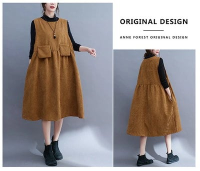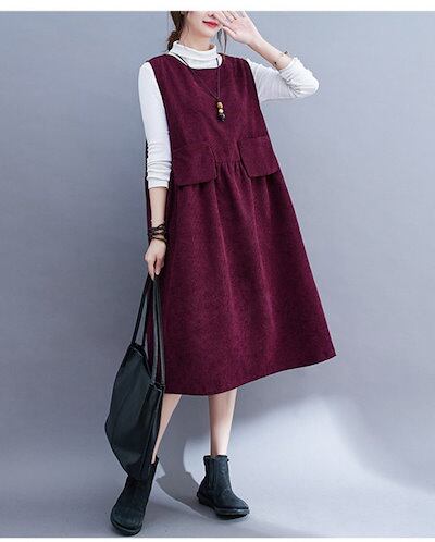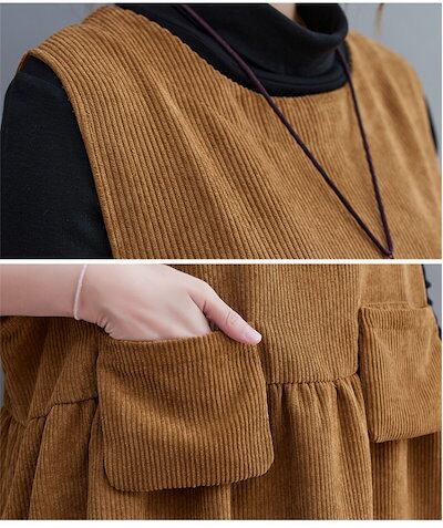 ワンピース 秋冬 コーデュロイ タンクワンピース ベストワンピース ジャンパースカート レディース ミモレ丈 オーバーオール 可愛い 無地 体型カバー 重ね着 カジュアル 30代 40代 50代 レッ