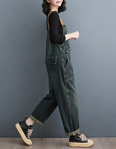 デニム サロペット 体型カバー レディース コットン 柔らか 着痩せ おしゃれ 可愛い 春 夏 秋 冬 重ね着 つなぎ 大人 カジュアル パンツ サロペットパンツ オーバーオール オールインワン マキ