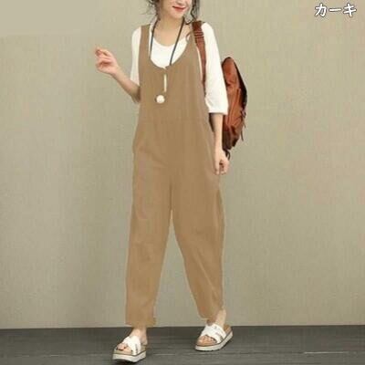 オールインワン パンツ サロペット レディース カジュアル おしゃれ オーバーオール ノースリーブ ロング丈 ネイビー ブラック 黒 ブラウン レッド カーキ グリーン グレー 春 夏 秋 20代 3