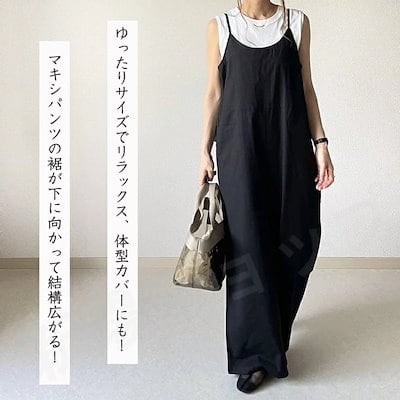 サロペット パンツ オーバーオール レディース 体型カバー オールインワン ロングパンツ ワイドパンツ サスペンダー パンツドレス ジャンパー キャミ マキシ カジュアル バックフリル フレア ゆった