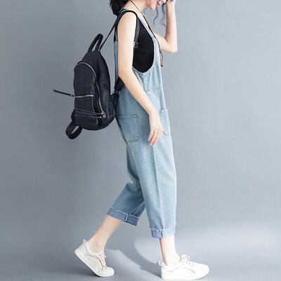 オールインワン オーバーオール デニム ボトムス ロング丈 サロペット ロンパース パンツ ダメージデニム オールインワン レディース オーバーオール パンツ ボトムス カジュアル ストレッチ デニム
