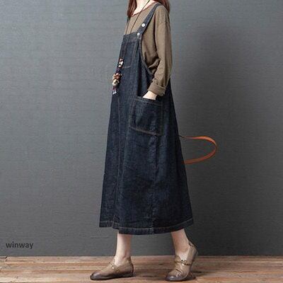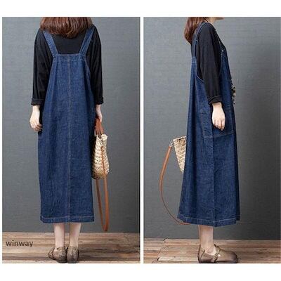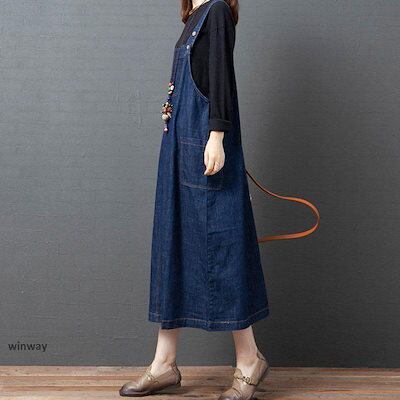 !サロペットスカート レディース デニム ワンピース ロング丈 ゆったり オールインワン キャミワンピ オーバーオール デニムスカート